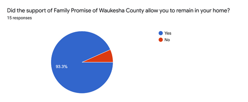 What we can report is that 93% were able to stay in their home. 60% report that their financial situation has improved, but 53% report that their current financial situation remains shaky or in crisis mode. We believe that this is an indicator of the current housing market. High rent, low housing availability, and income unable to match the cost of rent are all making housing unreachable for many in Waukesha County.